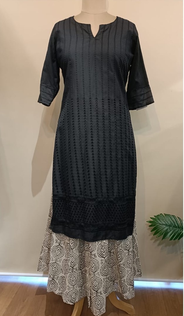 black cotton chicken kurtaBlack cotton chicken kurta