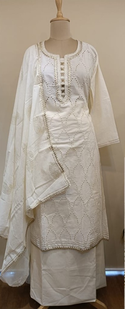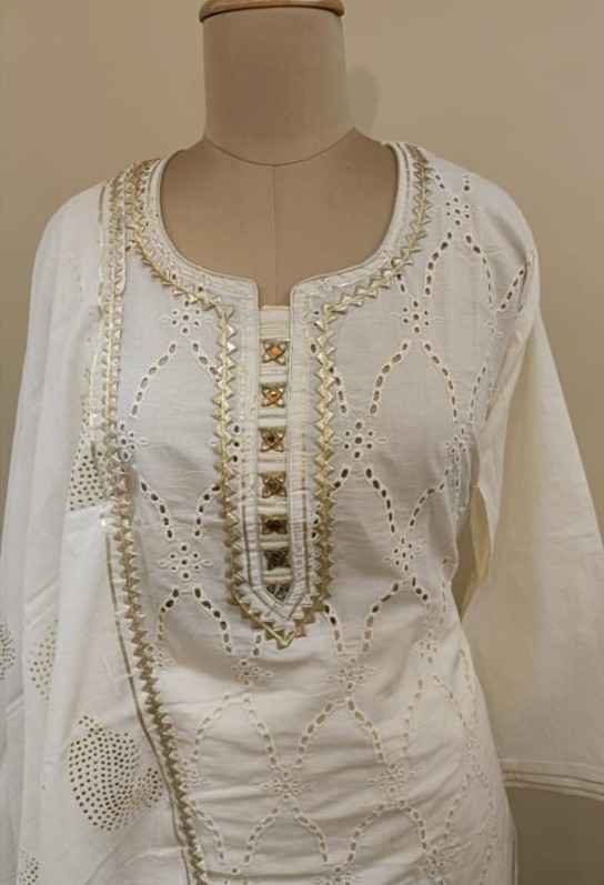Off-white cotton chikankari suit