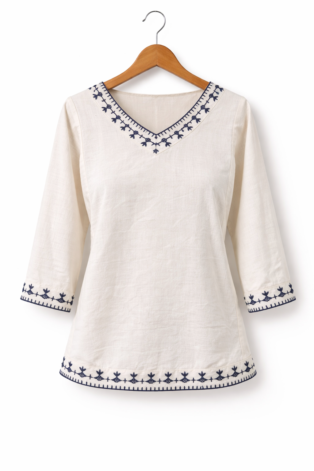 Offwhite khadi top with black machinework.